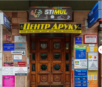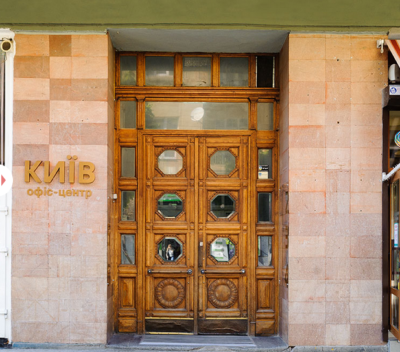 Хаотичне нагромадження вивісок різних установ, що розташовані в будівлі, замінила лаконічна вивіска з назвою офіс-центру. Як результат — очам пішоходів краще відкрився охайний фасад будівлі й автентичні вхідні двері з дерева.