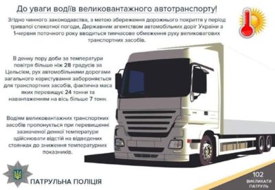 Відповідно до рішення виконавчого комітету Івано-Франківської міської ради від 19.06.2017 р. № 406, по автомобільних дорогах та вулицях міста Івано-Франківська заборонено рух рух великовагових та великогабаритних транспортних засобів або інших самохідних машин і механізмів в денну пору доби за температури повітря вище +28 С°. Дана заборона поширюється на транспортні засоби фактичною масою понад 24 тонни і навантаженням на вісь 7 тонн.