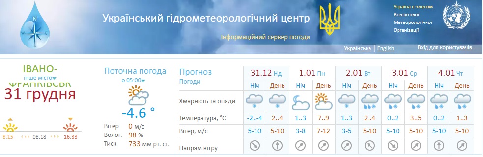 Сьогодні, 31 грудня, на території Івано-Франківської області прогнозують хмарну погоду з невеликими опадами.