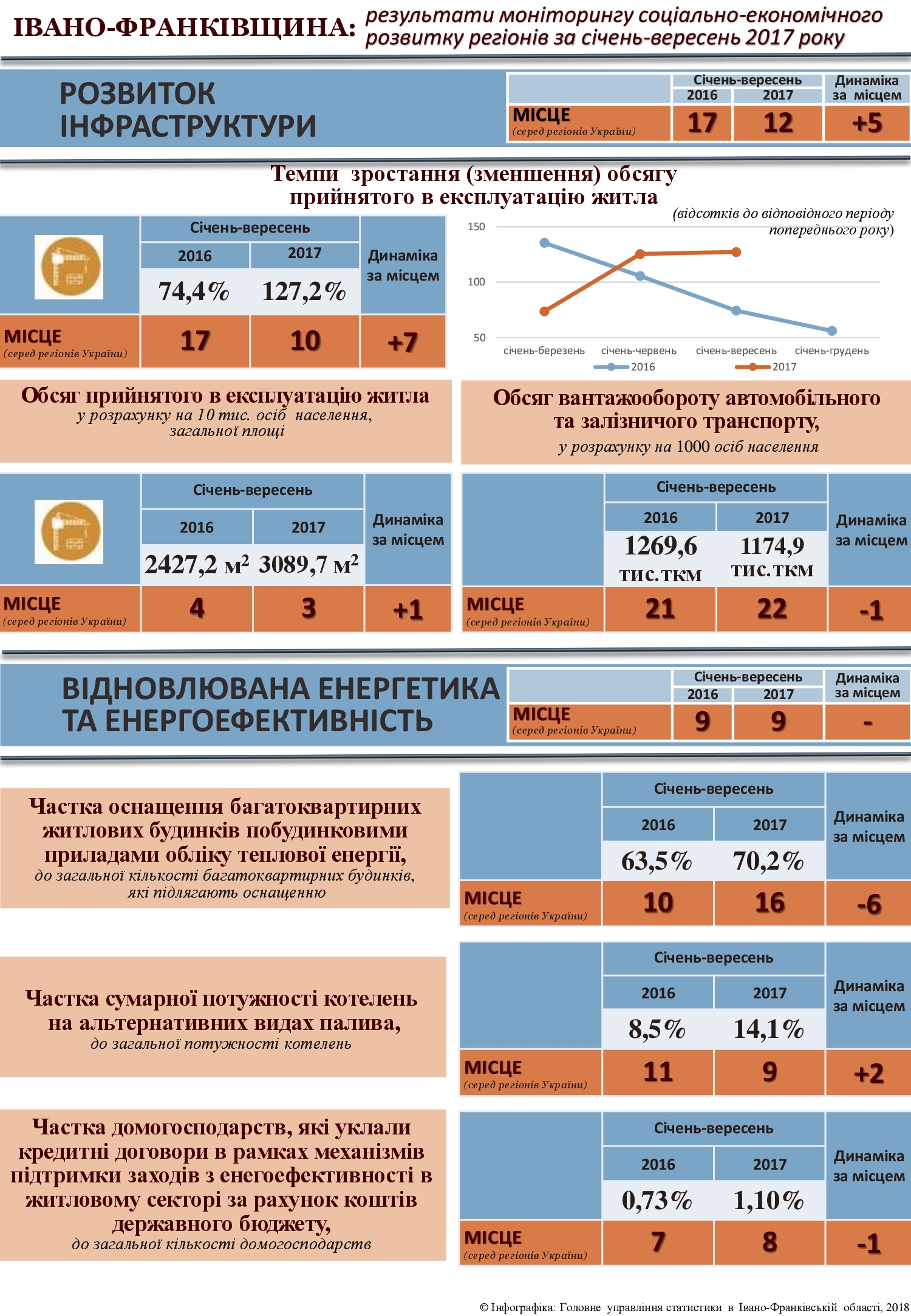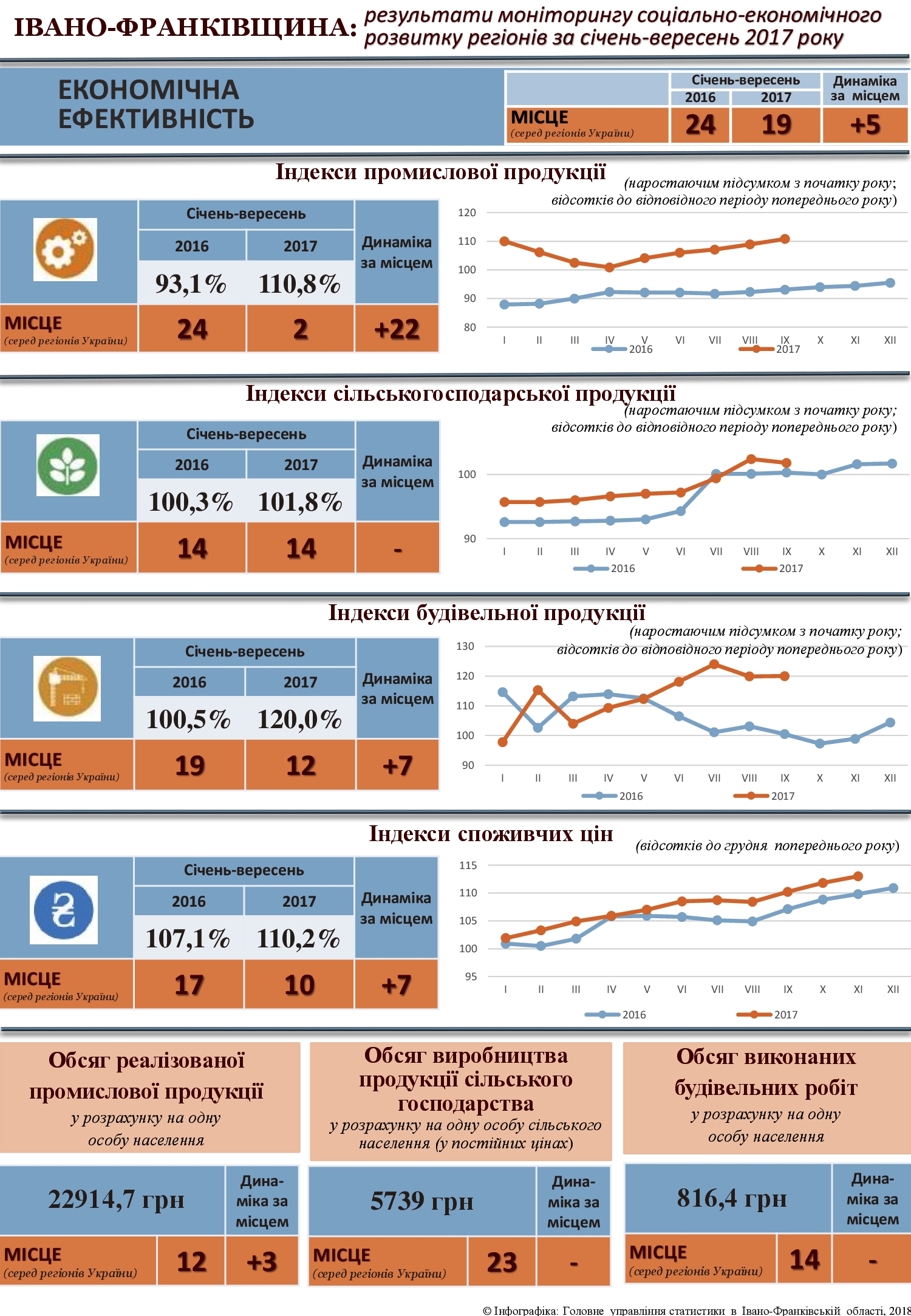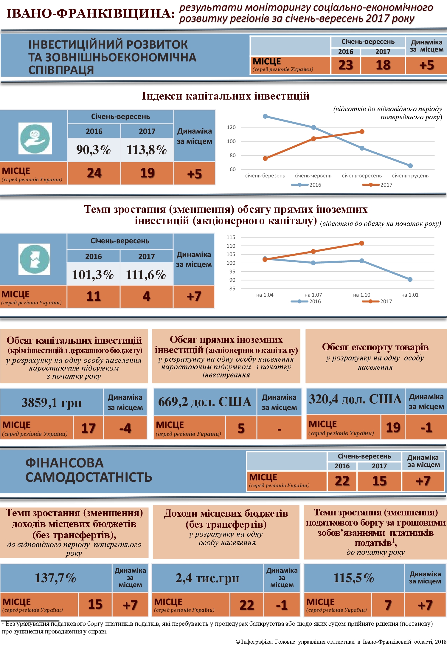 За результатами оцінки соціально-економічного розвитку регіонів держави за січень-вересень 2017 року, Івано-Франківська область покращила свої позиції за п’яти напрямами.