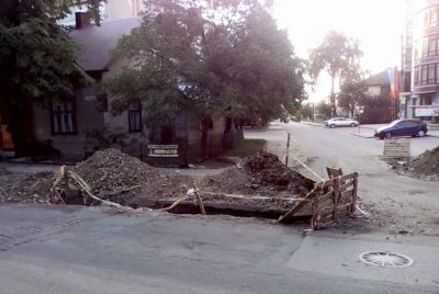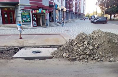 Там ближче до вокзалу, перед костьолом – свіжа здоровенна новенька траншея метрів так на 200. Десь тиждень як вирили – перед тим 4 місяці не мали часу явно…