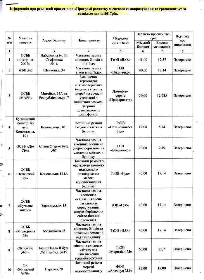 З початку цього року в Івано-Франківську 20 ОСББ та ЖБК реалізували власні проекти в межах програми розвитку місцевого самоврядування та громадянського суспільства.