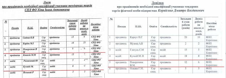Дмитро Корнієнко також конкурує у закупівлях із свекрухою Марією Хітою – 5 разів, а з тестем Іваном Хітою – ще 9 разів. З останнім підприємець має спільних працівників – продавця та водія.