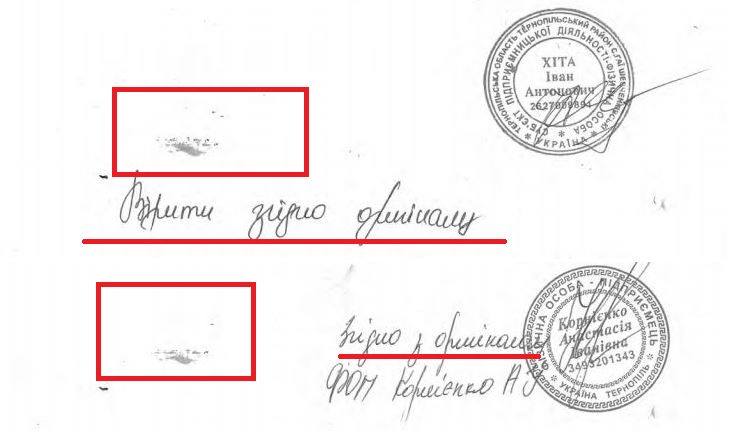 В документах Анастасії Корнієнко та Івана Хіти наявні спільні недоліки друку/сканування. Також візуально схожими є почерки, якими підписані копії. Разом вони зустрічалися на торгах шість разів.