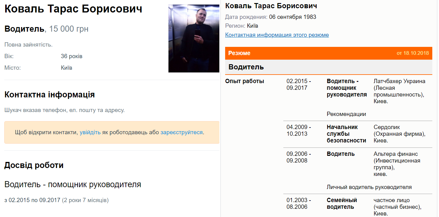 За рік до того, як стати власником компанії, Тарас Коваль шукав роботу водія. Як досвід роботи він вказував аналогічну роботу водія-помічника керівника в «Латчбахер Україна» та сімейного водія, а також керівника служби безпеки в охоронній компанії.
