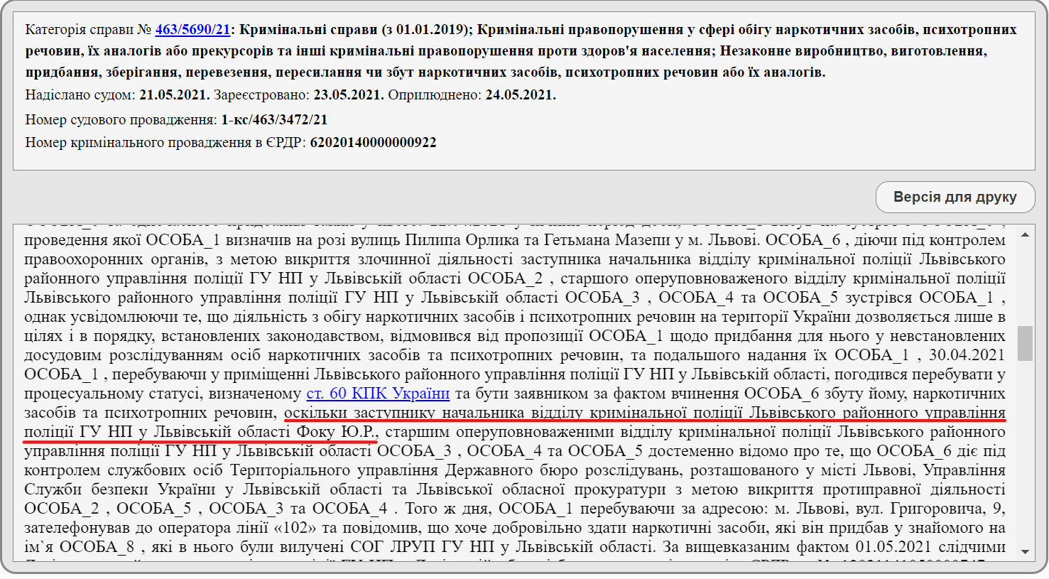 Нагадаємо, що Служба безпеки України виявила злочинну наркогрупу, до якої входили чинні та колишні працівники Львівського районного управління поліції, зокрема, заступник начальника одного з відділів. Трьох підозрюваних затримали 21 травня.