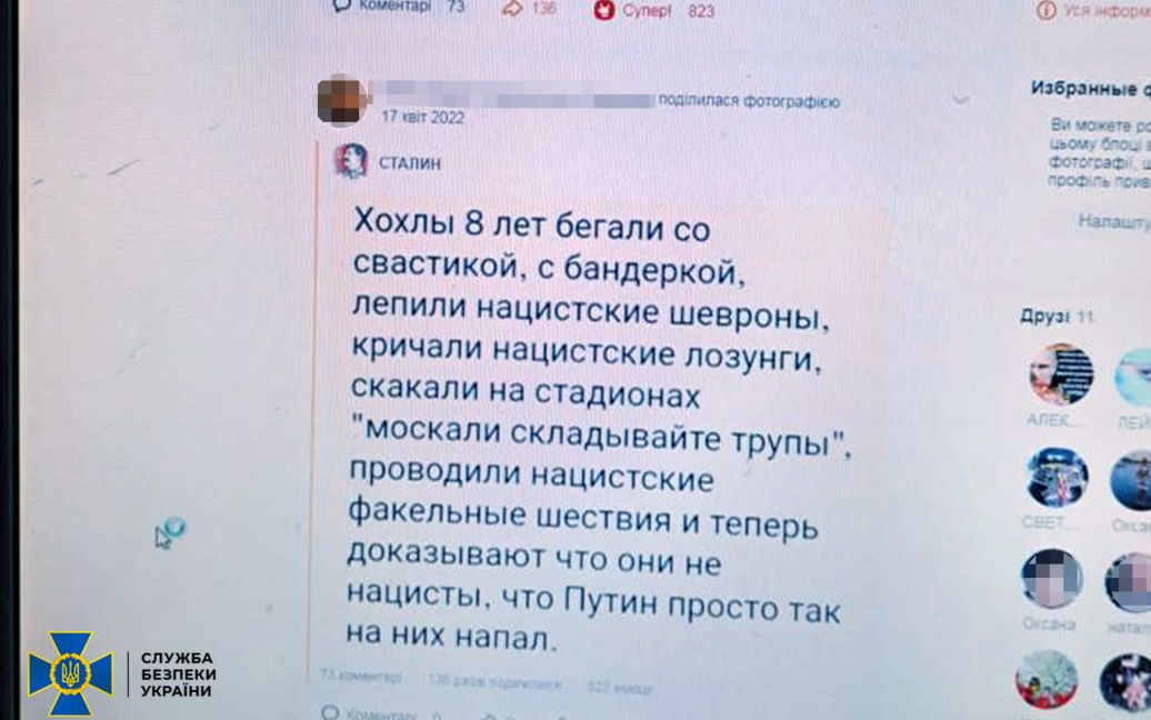 Як повідомили в СБУ, уродженка та мешканка Івано-Франківщини поширювала в соцмережі дописи, спрямовані на визнання правомірною збройної агресії Росії проти України.