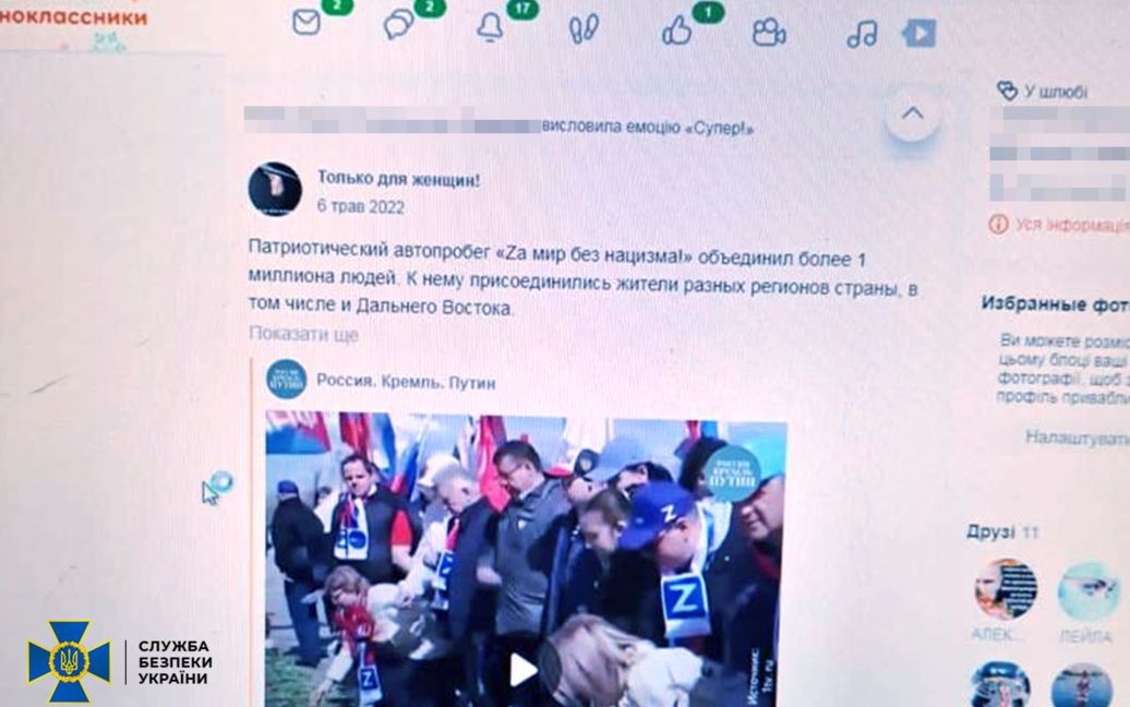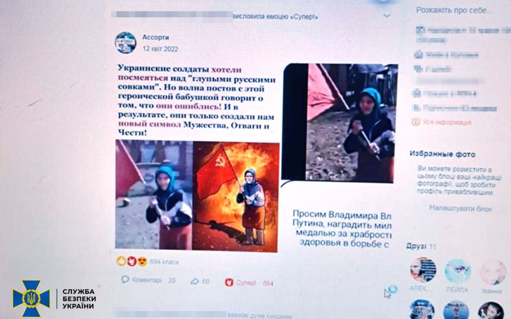 Агітаторка захоплювалася російським військовим керівництвом, поширювала російські наративи щодо “нацизму” та підтримувала інші інформаційні кампанії російської воєнної пропаганди.