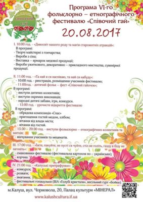 - 11:00 — дитячий фолькфест «Співочий гайочок»;