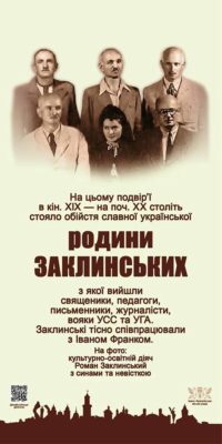 Завтра, 16 листопада, о 10:00 на фасаді загальноосвітньої школи №13, розташованої на вул. Галицька, 71, відбудеться відкриття пам`ятної анотаційної дошки на честь української родини Заклинських.