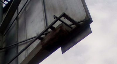 В Івано-Франківську, на вул. Галицькій, на одному з бігбордів дуже проржавілі металеві конструкції, через що може трапитися лихо.