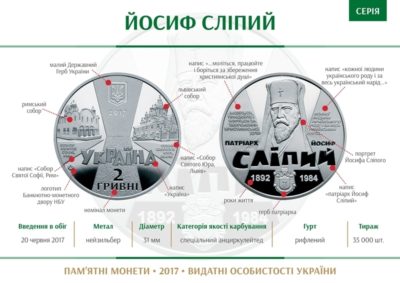 Цього року відзначається 125-а річниця з дня народження патріарха УГКЦ. З цієї нагоди Національний банк України випустив в обіг нову пам’ятну монету, яка присвячена церковному і громадському діячеві, педагогу, меценату, богослову, патріарху Української греко-католицької церкви Йосифу Сліпому.