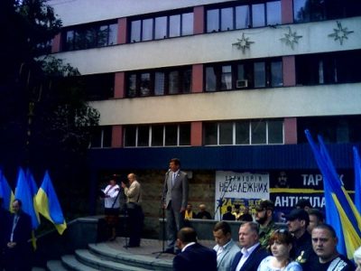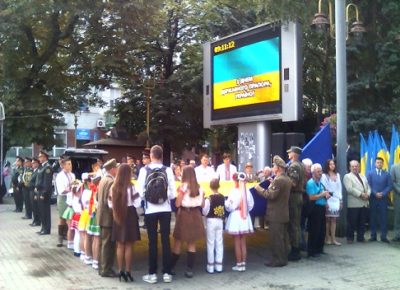 Як повідомляє кореспондент СТИКу, на святкування Дня українського прапору зібралося кілька сотен мешканців та гостей міста. В заході прийняли участь перші особи області та міста, місцеві творчі колективи, військовослужбовці Збройних Сил України та ветерани УПА.