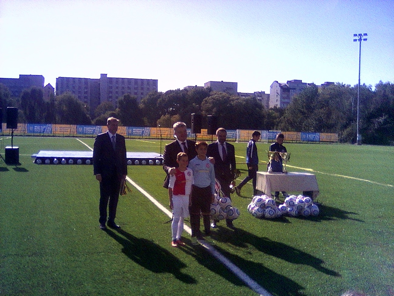 Наприкінці заходу учасники та переможці першого турніру на стадіоні «Хет-трик», який відбувся сьогодні, отримали нагороди з рук Петра Порошенка, Олега Гончарука та Андрія Павелко.