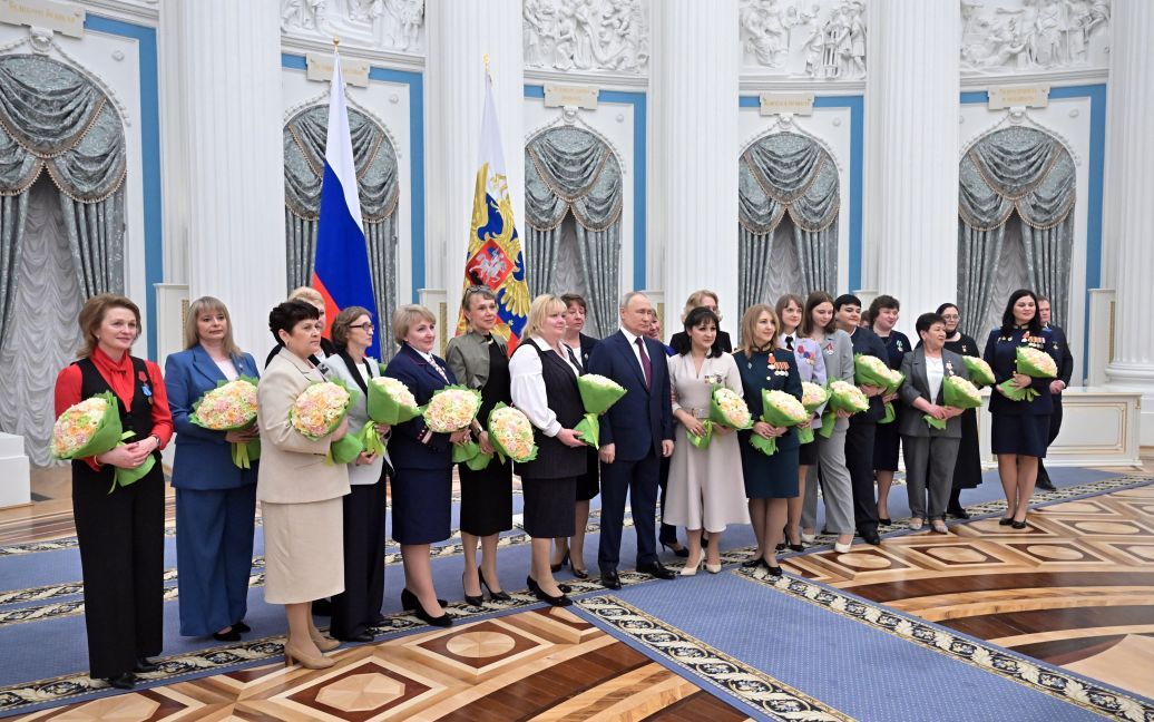 Російський диктатор Володимир Путін у Кремлі привітав жінок із Міжнародним жіночим днем та вручив державні нагороди.