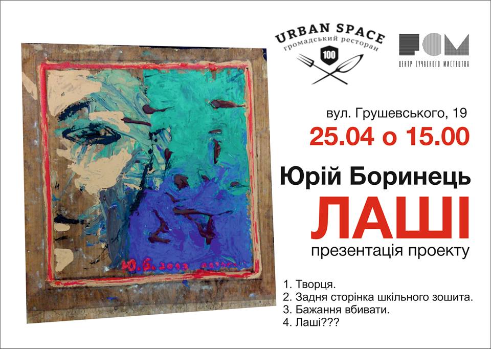 Також у суботу, о 15.00, у громадському ресторані «Urban Space 100» відбудеться презентація проекту Юрія Боринця «Лаші».