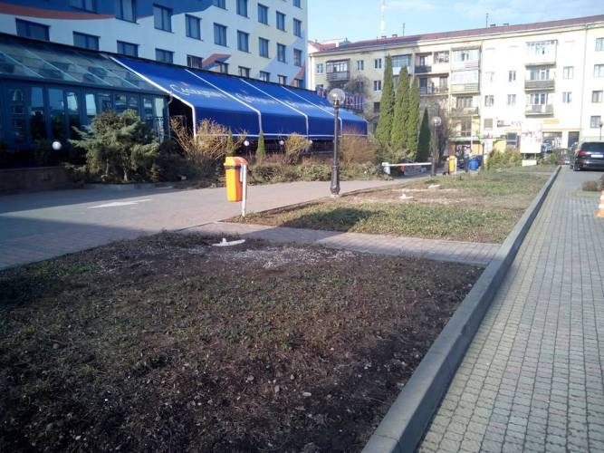 Наприкінці березня в Івано-Франківську, біля готелю "Надія" зрізали всі ялини, про що повідомляв Ростислав Гудзінський.