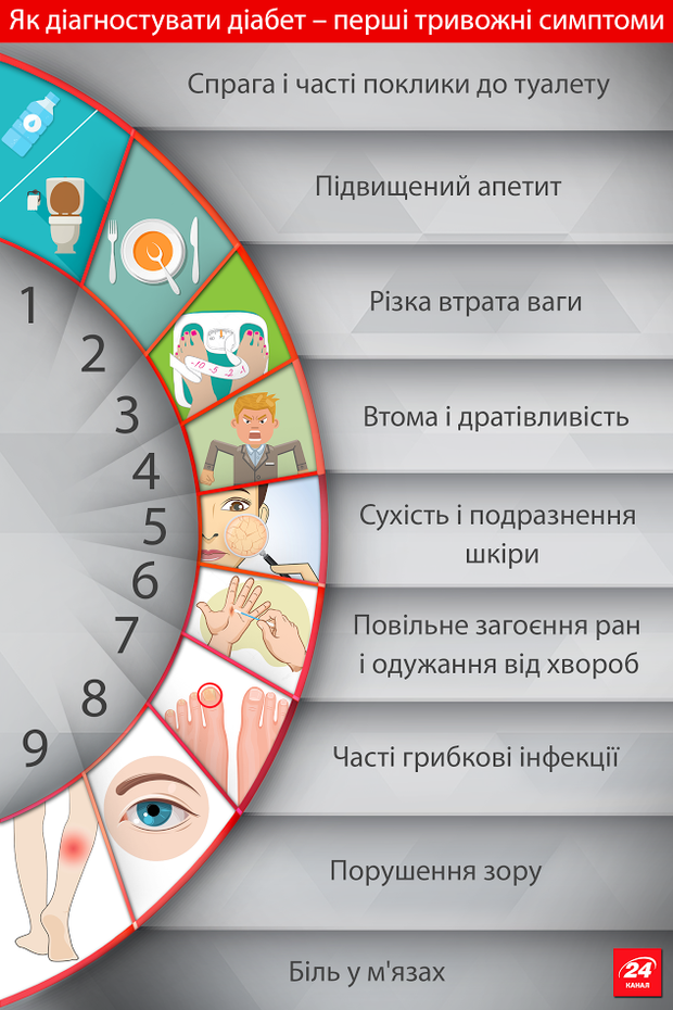 У інфографіці ви можете побачити 8 симптомів, які можуть означати непомітний перебіг діабету.