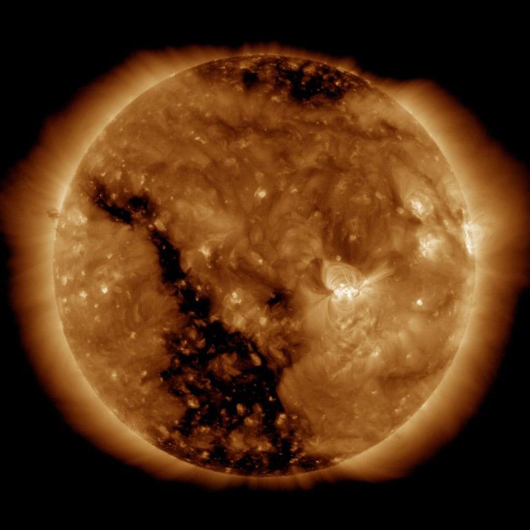 Вчені додали до оригінальної фотографії "усміхненого" сонця кілька комп’ютерних ефектів, щоб краще розгледіти унікальне космічне явище.