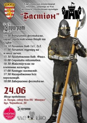 Сьогодні, 24 червня у Калуші поруч з палацом культури «Мінерал» відбудеться фестиваль середньовічної культури «Бастіон».