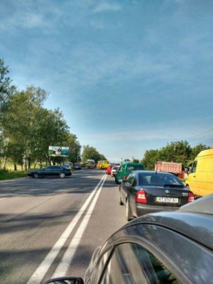 Кілька десятків людей безперервно ходять пішохідним переходом. За інформацією очевидців, у двох напрямках утворився значний затор. На місце виїхала патрульна поліція.