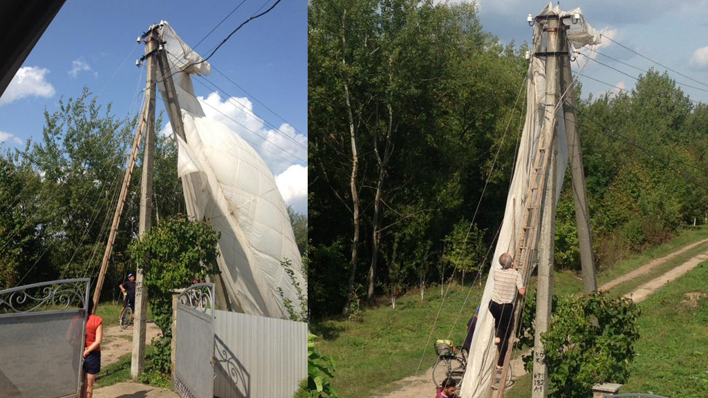 “От так сьогодні приземлився біля нас парашутист, дякувати Богу, що не приземлився сам на дроти”, – написала у соціальній мережі Facebook Вікторія Стасюк, яка також опублікувала фото пригоди.