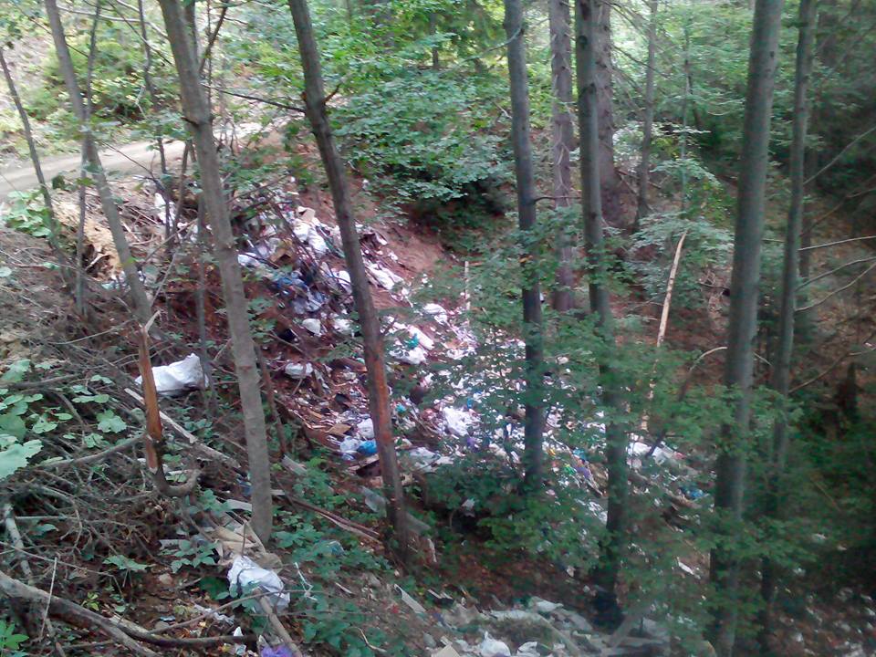 В горах біля с. Снідавка Косівського району знайдено купу побутового сміття, яке, напевно, залишили місцеві мешканці.