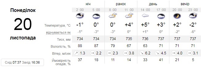 Народний прогноз погоди: 20 листопада вшановується пам’ять святого Федота Корчемника. У народі святого називали Федот-льодостав, і казали: “Святий Федот лід веде”. Цього дня спостерігається стійке промерзання ґрунту, нерідко земля вкривається першим снігом, замерзають водойми.
