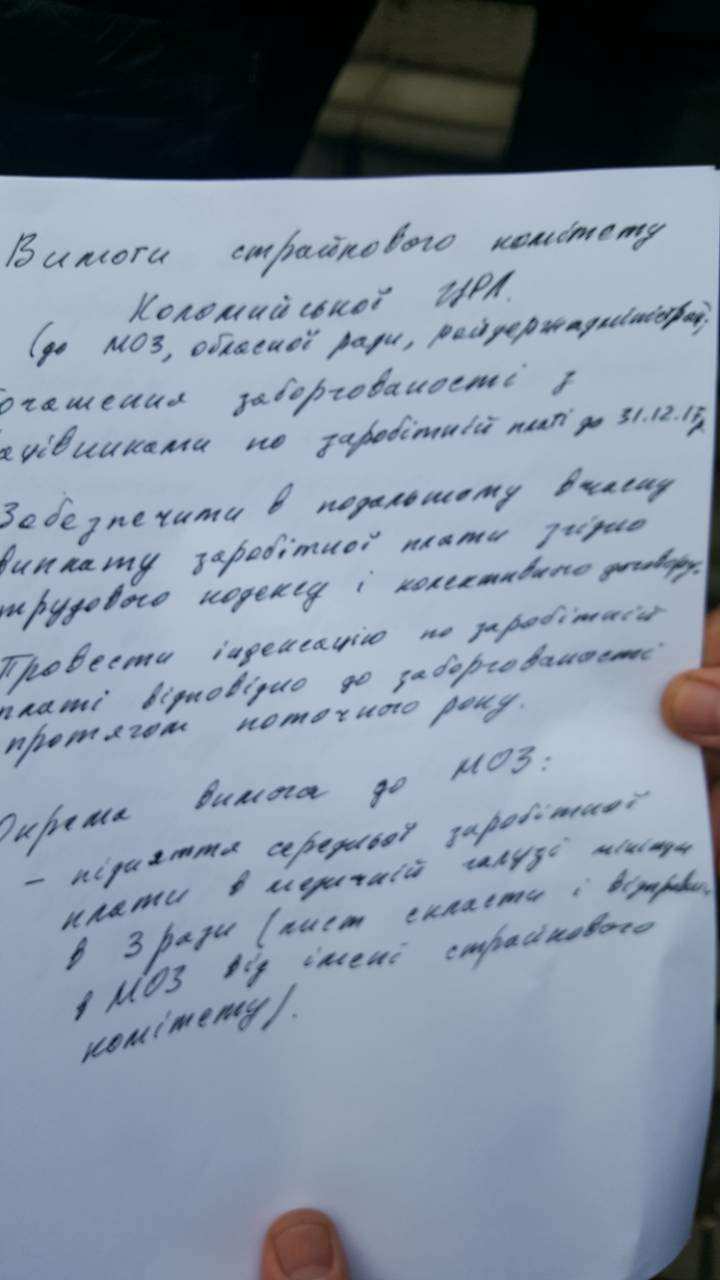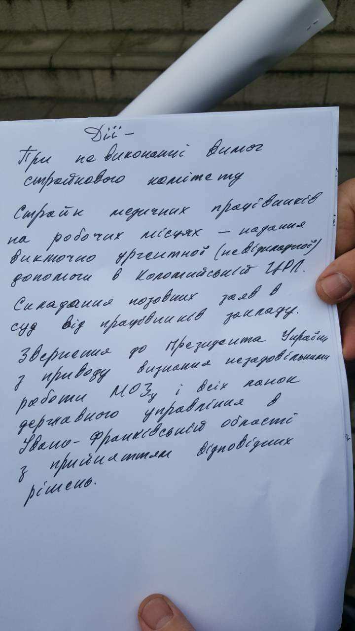 Страйковий комітет нині озвучив свої вимоги до влади. Одна з них – втричі підняти зарплату медикам. А також визнати роботу медичної галузі області і району незадовільною. Якщо їх не виконають – з першого січня надаватимуть мешканцям лише невідкладну допомогу.