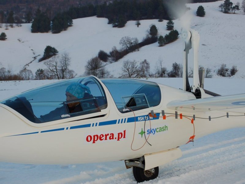 Авіатор з Польщі Себастян Кава пролетів над зимовими українськими Карпатами на своєму планері ASH 25.