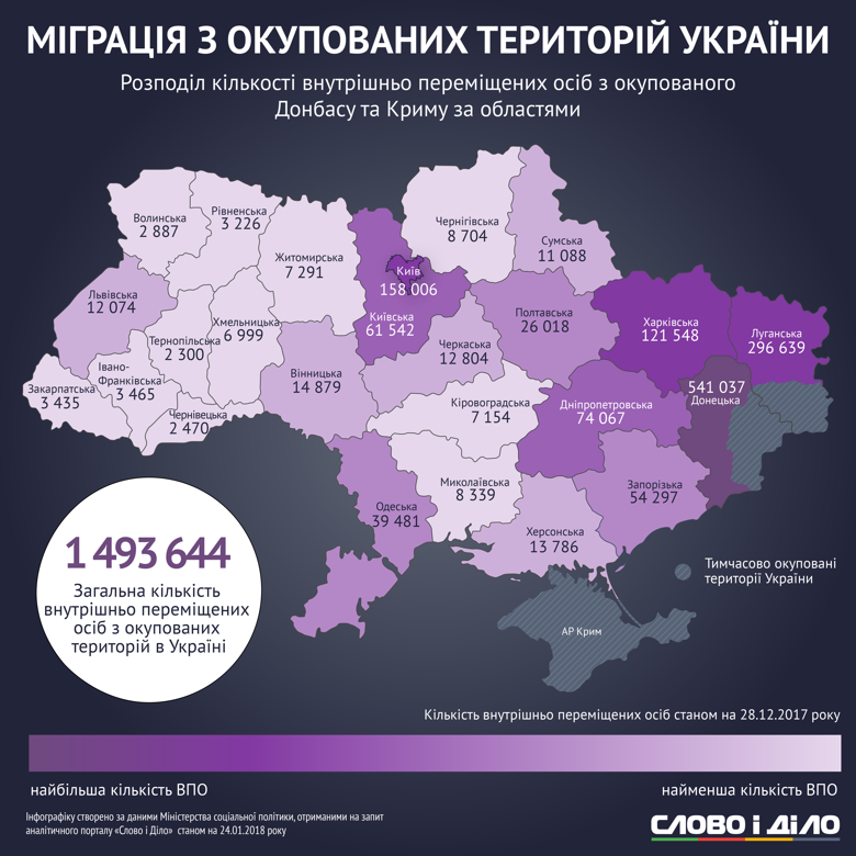 Станом на кінець грудня в Україні зареєстровано майже 1,5 мільйона внутрішньо переміщених осіб (ВПО) з окупованих територій.