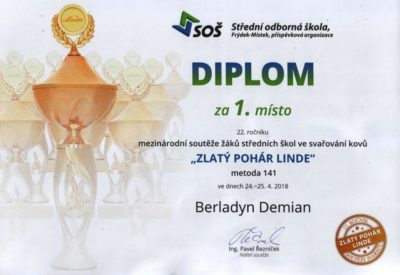Власне Дем’ян, перемігши у номінації «Дугове зварювання неплавким електродом і інертних газах» (метод 141), вперше за всю історію виступів команди України здобув «Золотий кубок Лінде 2018».