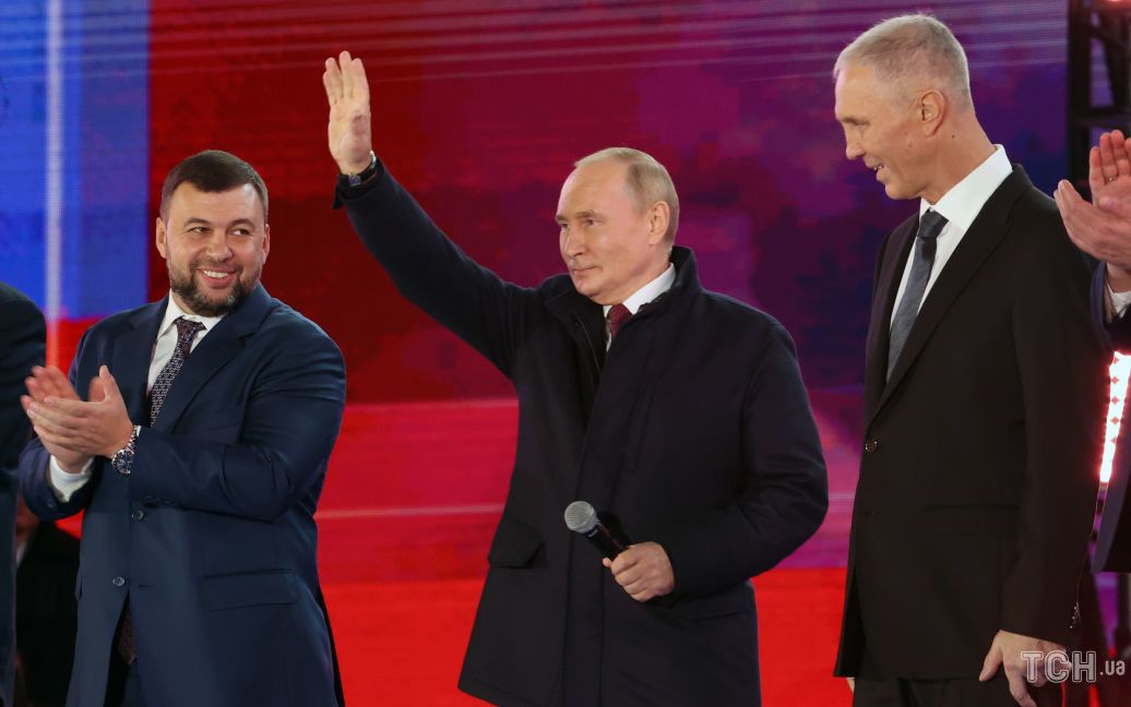 30 вересня у Кремлі на урочистій церемонії Путін підписав документи про “приєднання” до РФ окупованих територій Донецької, Луганської, Херсонської та Запорізької областей. У церемонії взяли участь колаборанти Володимир Сальдо, Євген Балицький, Денис Пушилін та Леонід Пасічник.