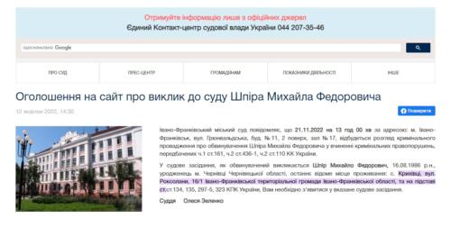 Шпір 6 вересня 2020 року залишив Україну у пошуках політичного притулку. Знайшов його, звичайно, в Росії. А 19 березня 2021 року СБУ повідомила про пред’явлену Шпіру підозру по трьом статтям Кримінального Кодексу України. А недавно судова влада інформувала про виклик чоловіка до суду.