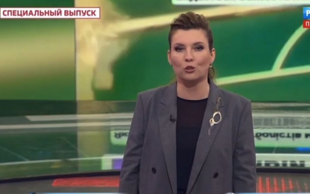Ведуча пропагандистської програми на російському телебачення Ольга Скабеєва вигадала історію про співробітників Служби безпеки України, які нібито грають у настільний футбол мощами з Києво-Печерської лаври.