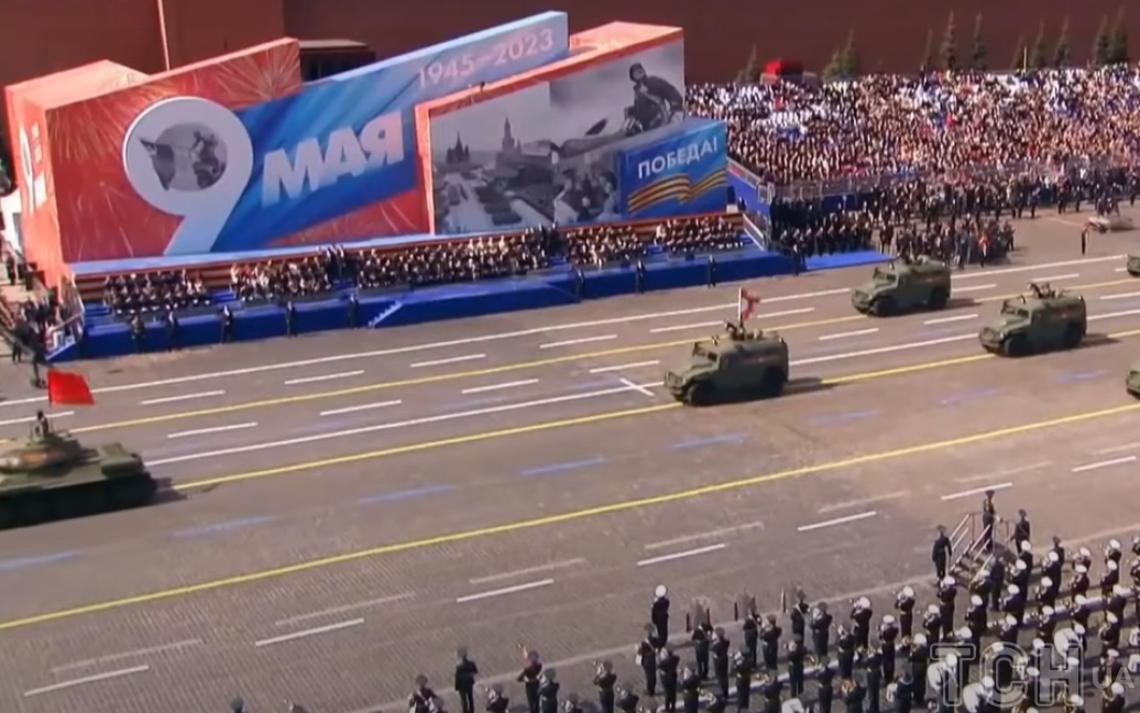 9 травня в Інтернеті ширилася інфографіка, як у росіян ріділа техніка з року в рік на парадах. У 2020 році на параді було 216 одиниць техніки, в 2022 — 131, а в 2023 — лише 51 одиниця та єдиний танк, який проїхався Червоною площею.