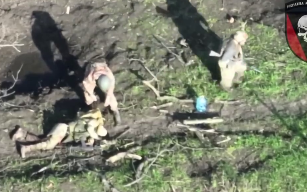 Військові 72-ї окремої механізованої бригади імені Чорних Запорожців з дрона зняли момент, як російський окупант знімає з мертвого побратима годинник.