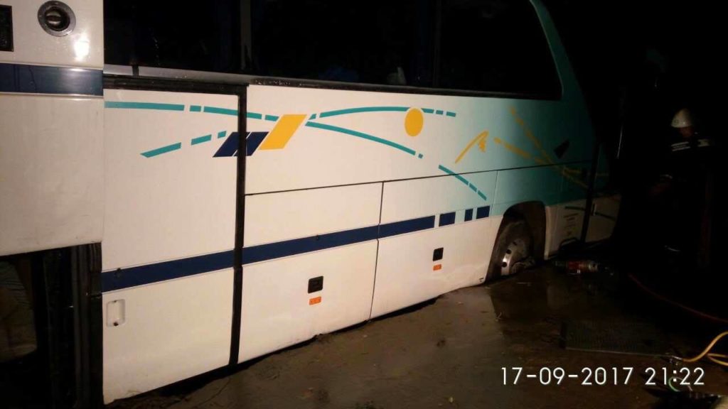 В Івано-Франківську автобус з польськими туристами провалився у яму. ФОТО