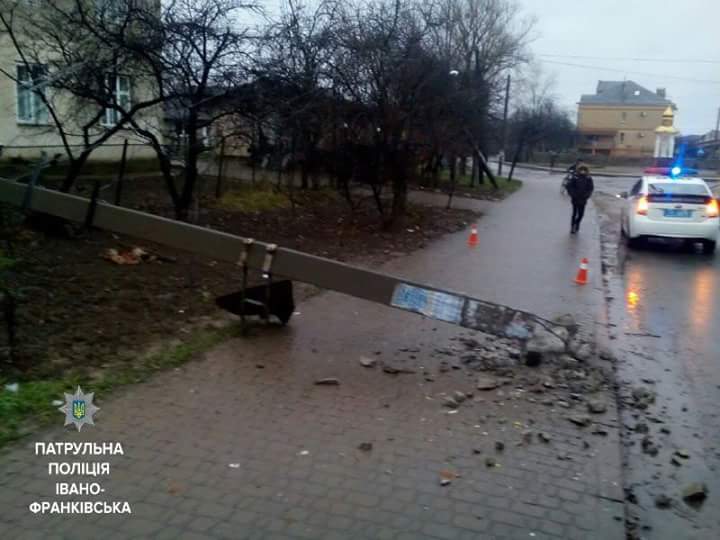 В Івано-Франківську водій маршрутного автобуса зніс три електроопори та втік з місця ДТП (ФОТО)