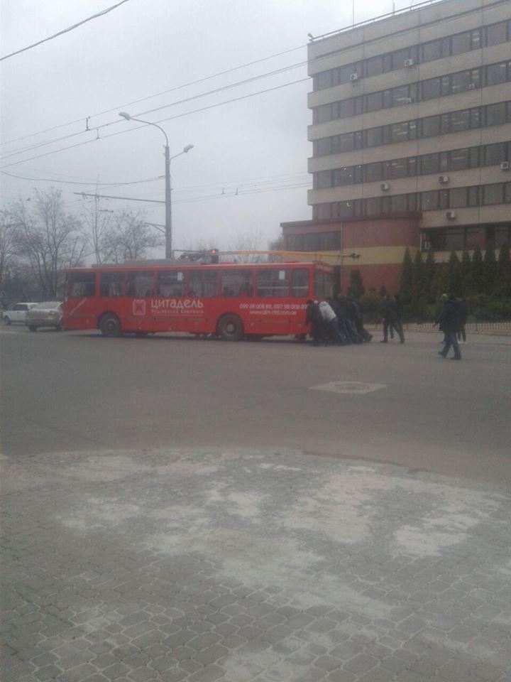 У Франківську люди штовхали тролейбус, щоб об’їхати затор (ФОТО)