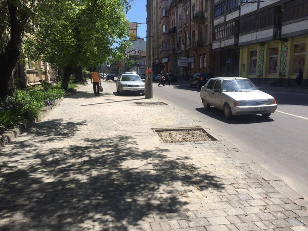 На Галицькій продовжили облаштовувати тротуар (фото)
