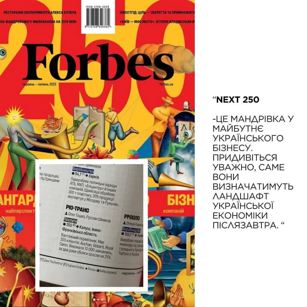 Транспортно-експедиційна компанія «RIO-TRANS» з Калуша увійшла до престижного щорічного рейтингу Forbes Ukraine Next 250, який відзначає найперспективніші українські підприємства із річним виторгом від 10 млн до 1 млрд грн.
