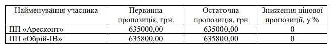 ПП «Аресконт» та ПП «Обрій-ІВ» у двох аукціонах зовсім не понижували свої початкові цінові пропозиції. Експертні висновки свідчить про те, що ПП «Обрій-ІВ» не збиралося перемагати у процедурах закупівель, а підготувало свою пропозицію як прикриття з метою забезпечення перемоги ПП «Аресконт».
