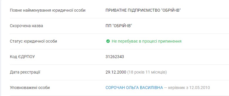 За даним інформаційно-аналітичної платформи YouControl приватне підприємство «Обрій-ІВ» зареєстроване в грудні 2000 року.