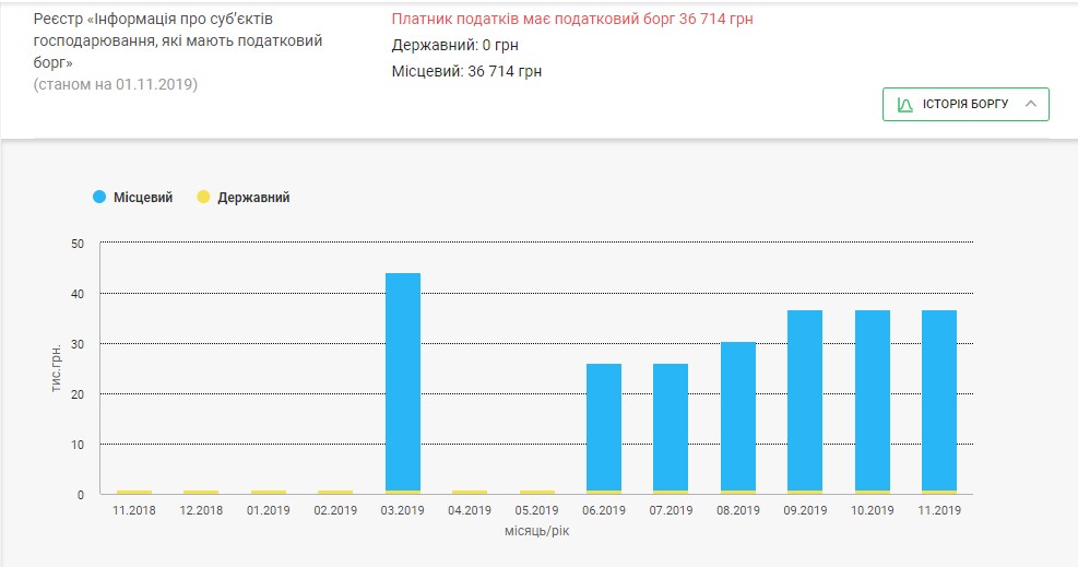 «Аресконт» має податковий борг – 36 714 гривень.