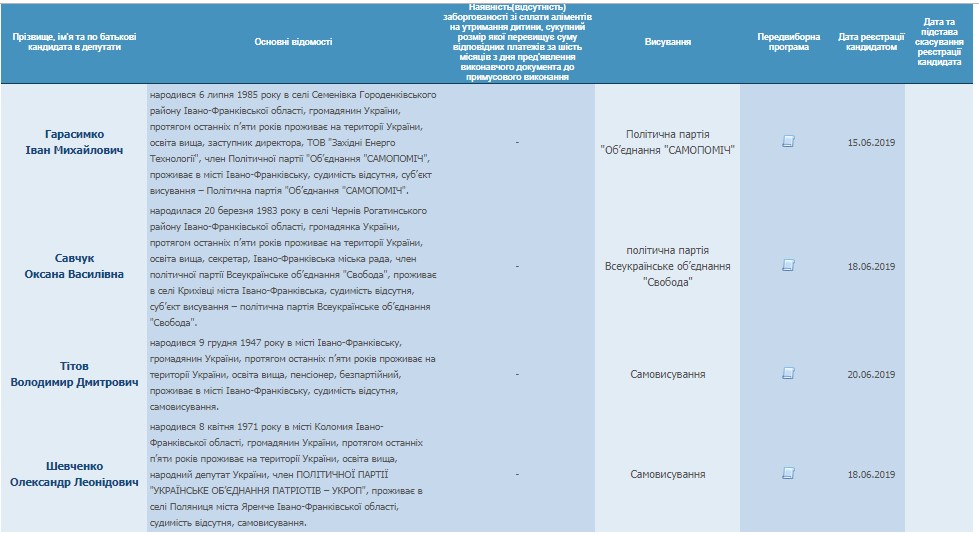 Тепер про тих, хто заявляв, що йде в парламент представляти інтереси Івано-Франківська, проте в списку кандидатів ще не зареєстрований.