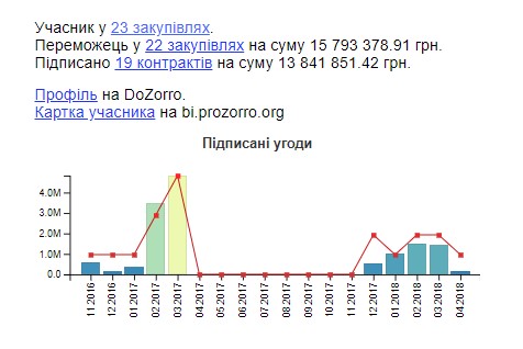 Проте, як свідчать дані ProZorro обидві компанії успішно брали участь у державних закупівлях, ще й неодноразово перемогли у тендерах, що дозволило їм отримати мільйони гривень від державних установ.