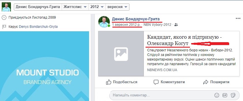 Ще більш дивно, що цього не розуміє і один з лідерів його штабу Денис Боднарчук-Грита, адже досвіду роботи на виборах йому не позичати: у тому ж 2012 році разом із Сторожуком Денис теж працював на місцевих регіоналів. Навіть відкрито агітував за представника ПР у соцмережах і не тільки.